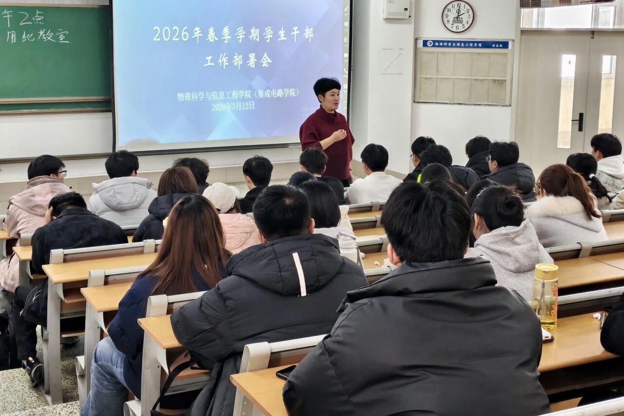 本次会议的召开,不仅为新学期学生干部工作划定了清晰“路线图”,更强化了学生干部的服务意识与责任担当。下一步,物理科学与信息工程学院(集成电路学院)全体学生干部将以此次会议为契机,履职尽责、真抓实干,全力推动班级管理精细化、校园活动常态化,为学院学风建设与高质量发展注入青春动能。