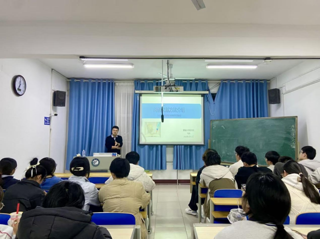 课上,马帅以“阅读文献方法介绍——从信息获取到知识内化的科学途径”为主题,系统讲解了文献的概念、分类与特点,同时强调检索高质量文献的必要性,为同学们搭建起文献学习的基础认知框架。在核心的高效阅读环节,他重点传授快速浏览法:通过题目、作者及地址快速定位文献信息,借助摘要把握核心主旨,结合图表与讨论部分提炼关键结论。随后,马帅完整拆解科技论文结构,详细介绍标题、摘要、引言、方法、结果、讨论、参考文献等模块的阅读逻辑,帮助同学们清晰掌握学术文献的阅读方法。为推动理论知识落地,马帅还以专家笔谈、专业学术文献及优秀学生毕业论文为例,直观展示文献要素提取技巧,手把手指导同学们从文献中梳理研究背景、技术路径与核心贡献,让晦涩的专业文献阅读变得清晰易懂。最后,马帅鼓励同学们在今后的专业学习中养成主动阅读文献的习惯,不断提升信息获取与知识内化能力。