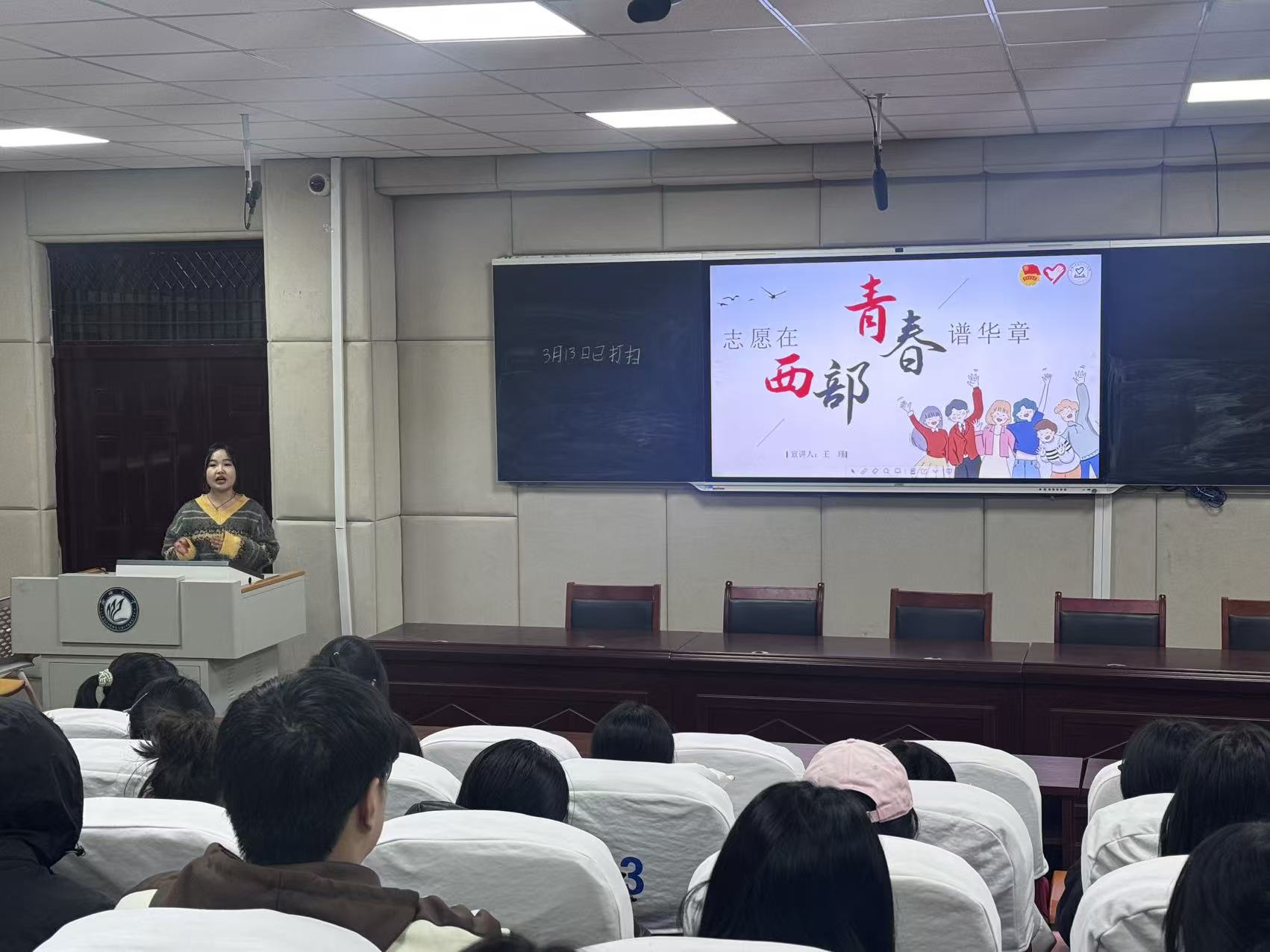 3月15日,传媒技术学院于西11#A410举办了第二期2026年西部计划宣讲活动。本次活动特邀第 25 届聊城大学研究生支教团志愿者王瑾担任主讲嘉宾。传媒技术学院部分学生参与了此次活动。
