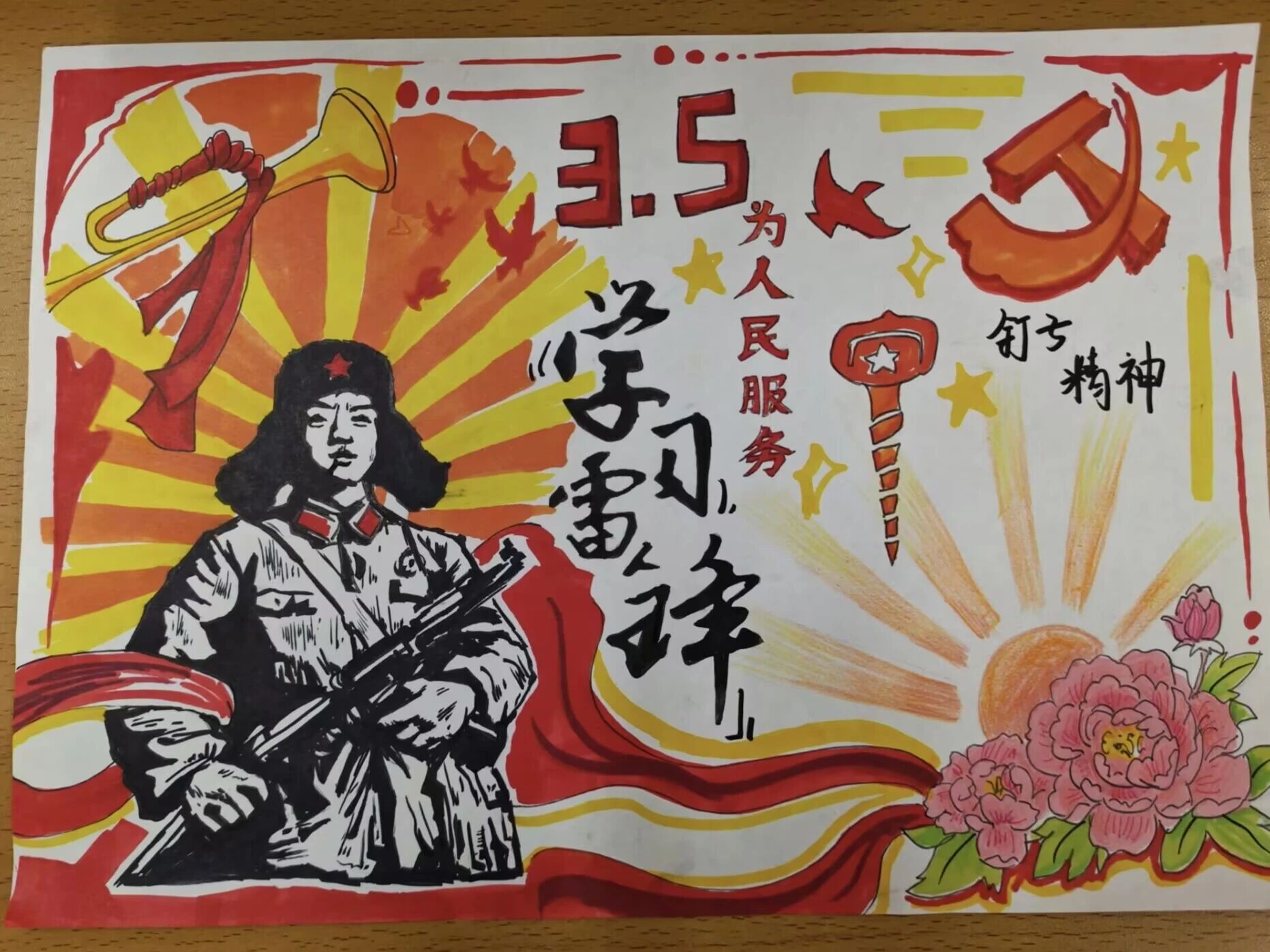 活动现场,同学们围绕雷锋精神核心内涵自主构思创作,综合运用手绘、创意排版等多元艺术形式,将助人为乐、爱岗敬业、无私奉献、艰苦奋斗的雷锋精神,巧妙融入每一幅作品之中。大家精心勾勒、细致着色,以青春巧思与创意笔触,为雷锋精神注入了鲜活的青春活力,以灵动色彩传递精神温度,让历久弥新的雷锋精神在创意表达中焕发时代新光彩。活动结束后,工作人员秉持公平、公正、公开的原则,从主题契合度、艺术创意性、视觉表现力、精神传达力等多个维度,对所有作品进行评审,最终评选出多幅优秀作品。