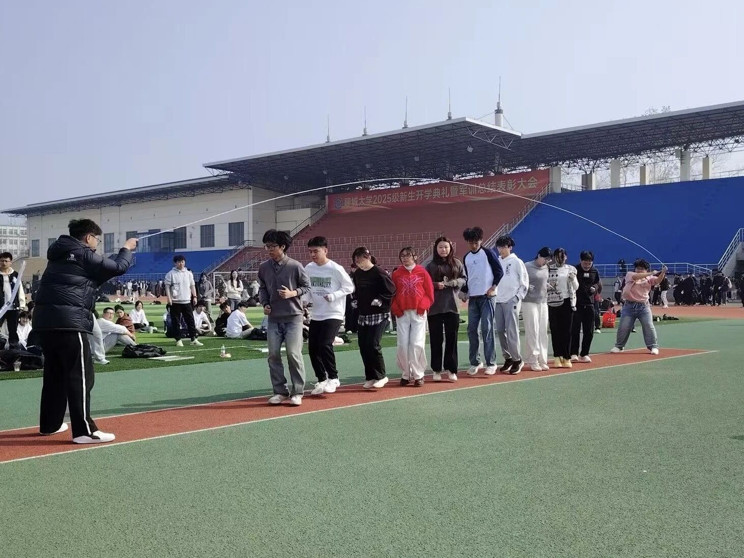 以青春之名,展运动之姿。为进一步锤炼同学们的意志品质,凝聚团队奋进力量,展现我院学子昂扬向上的精神风貌,近日,历史文化与旅游学院于西校区田径场参加“绳采飞扬起,青春正当时”聊城大学2026年春季长绳比赛。经过多轮激烈角逐,我院最终获得一等奖、全校第二名的优异成绩。