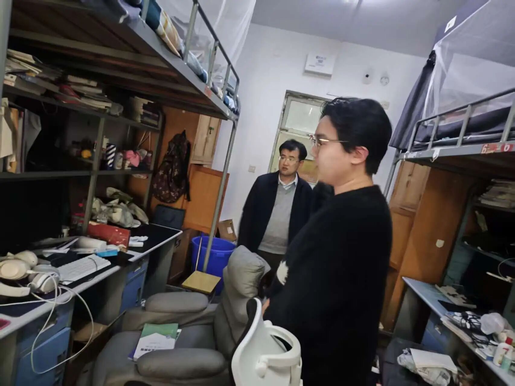 检查走访过程中,范鑫烨首先就宿舍的安全用电情况、上下床铺的登梯牢固情况等进行重点检查,他叮嘱同学们务必严格落实学校安全用电规定,提高安全意识,杜绝用电安全隐患,并且提醒同学在上下床铺时要注意安全,防止踩空受伤。随后范鑫烨检查了宿舍各区域的卫生情况并对卫生状况优良的宿舍给予了肯定与表扬,鼓励同学们继续保持宿舍的干净整洁。检查过后,范鑫烨与同学们亲切的交谈,他询问了同学们的生活近况,并且耐心倾听了同学们在宿舍生活方面的问题与建议。