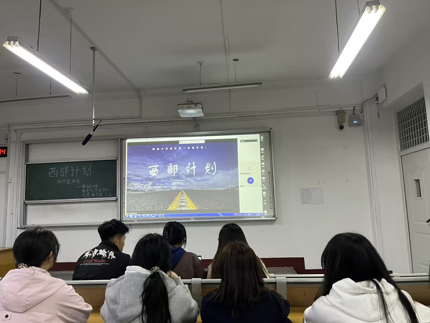 为深入贯彻国家乡村振兴战略,引导青年学子扎根基层、服务西部,3月22日,商学院(质量学院)志愿服务部于东校区1#409室举办西部计划专题宣讲会,志愿服务部宋雨灿担任主讲人。