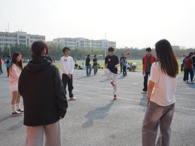 毽舞春风承古韵,翎动心弦展风华。活动伊始,男子组与女子组个人赛率先开赛,参赛同学精神饱满、态度认真,严格遵守比赛规则,积极投入比拼。彩毽在脚尖上下翻飞,轻盈灵动的身姿与错落有致的节奏,勾勒出春日里生动鲜活的图景。随后,团体赛将现场氛围推向高潮,各队伍分工协作、默契配合,在传递与接续中凝聚团队力量,每一次精准衔接、每一声鼓劲呐喊,都彰显出团结向上、奋勇争先的良好风貌,赛场边的助威声与欢笑声此起彼伏,为春日校园注入蓬勃朝气,整个田径场沉浸在热烈而欢快的氛围之中。