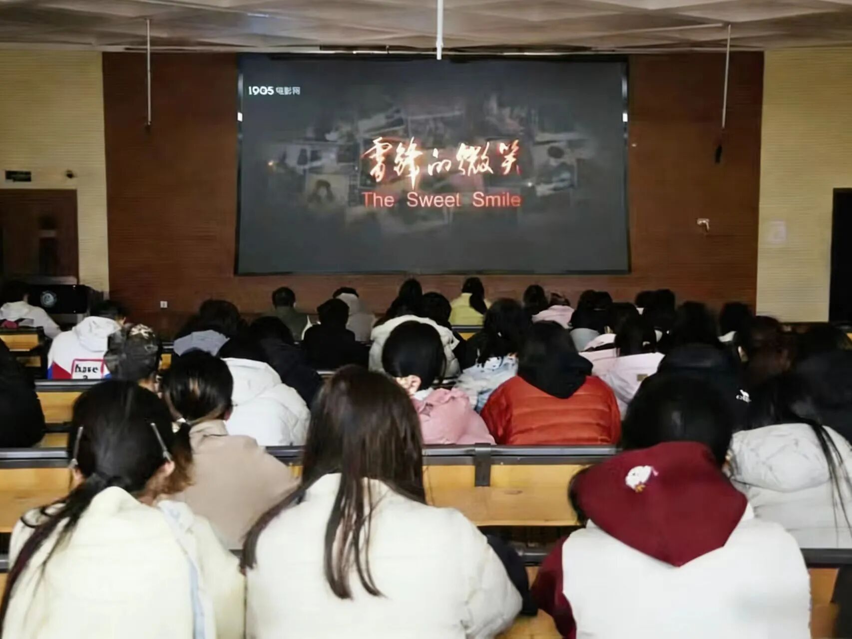 《雷锋的微笑》以雷锋同志的成长轨迹为脉络,通过细腻镜头还原他在军营与群众中的生活片段,生动展现他助人为乐、爱岗敬业、无私奉献的崇高品格,让雷锋形象从历史符号变为有温度、有力量的身边榜样。影片用温暖细腻的叙事,让在场学生深刻体会到雷锋精神的真挚与厚重,感受平凡英雄的精神力量。