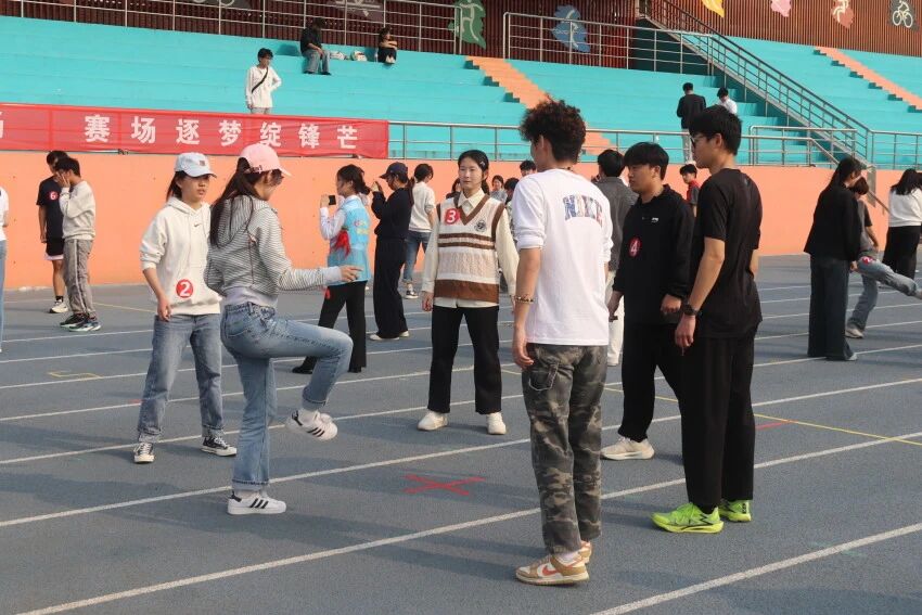 赛前准备阶段,学院参赛队员有序开展热身训练,反复打磨踢毽基础动作,队员们围坐交流,共同商讨团队配合节奏、赛场站位布局与突发情况应对策略,彼此加油鼓劲、相互纠正动作,以饱满的状态为赛事做足准备。
