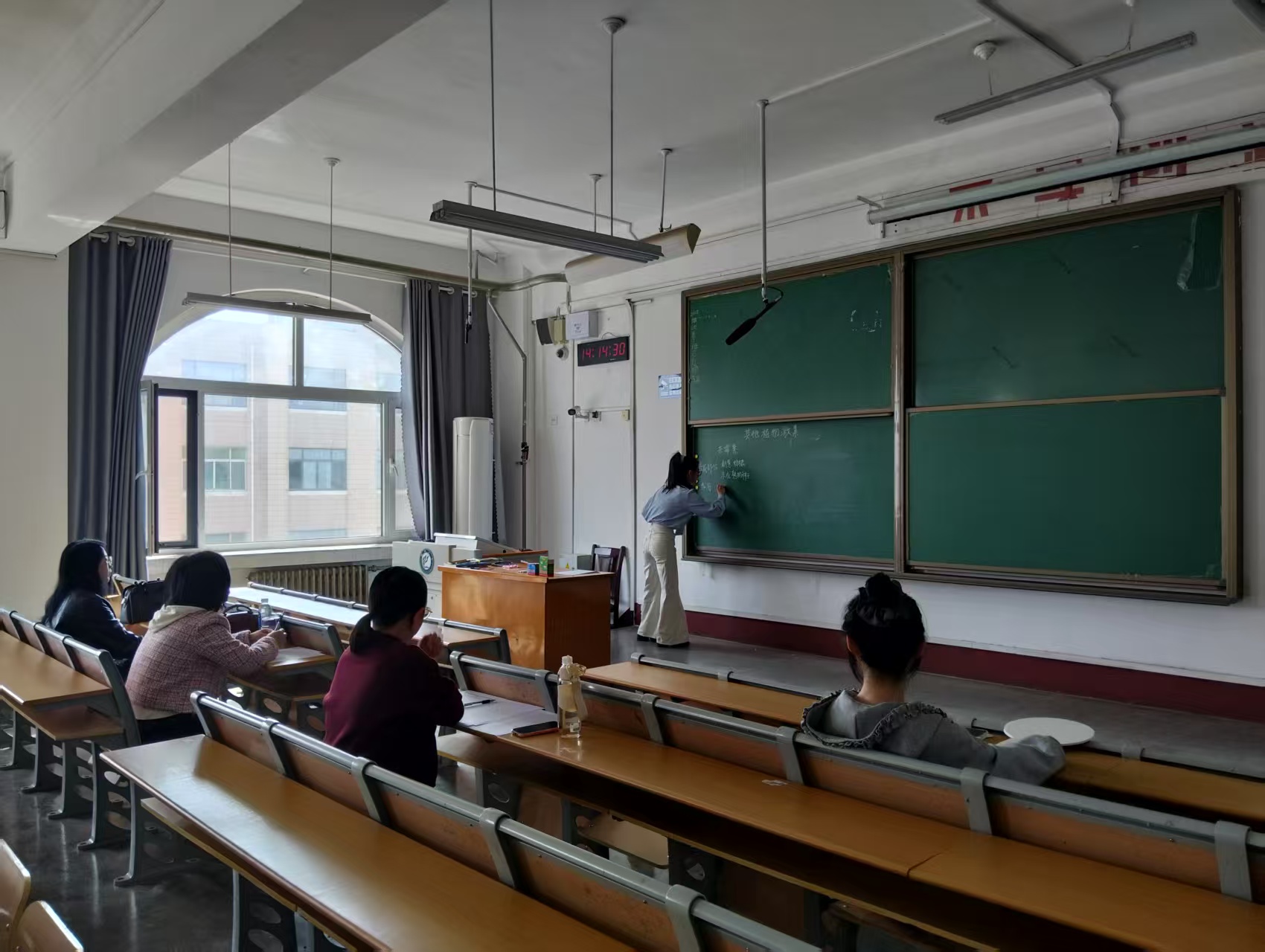 本次大赛共设置随机题目试讲、答辩和钢笔字测试三个环节,旨在考察选手们的专业知识储备、语言表达能力、课堂互动能力、临场应变能力及钢笔字书写规范性。比赛现场,参赛选手在606教室进行集中封闭备课,每位选手依据现场抽取的课题,限时90分钟,独立完成教学设计。备课结束后,选手依据学段划分,分别前往609教室(初中组)和610教室(高中组)进行模拟授课及答辩环节。每位选手在10分钟内进行模拟授课,需展示包含导入、讲授、互动及板书在内的完整教学流程,考察选手们的课堂驾驭能力与语言表达能力。试讲及答辩结束后紧接着进入606教室进行钢笔字测试。