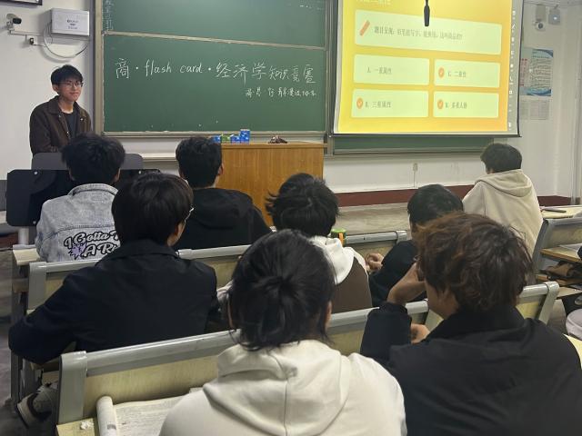 本次活动以沉浸式闪卡PPT闯关讲解为主要形式,紧扣经济学专业学习核心内容展开。活动主讲人围绕微观经济学、宏观经济学、政治经济学三大专业核心模块,进行系统性梳理与细致讲解。讲解过程中,主讲人立足专业学习实际需求,将抽象的专业理论知识与当下市场热点案例、日常财经生活场景紧密结合,打破理论与实践的壁垒,让专业知识更具实用性与易懂性。同时,主讲人针对性分享碎片记忆法、高效背诵技巧等实用学习方法,帮助同学们理清知识脉络,构建完整、清晰的专业知识体系,有效破解日常学习中的重点难点问题。