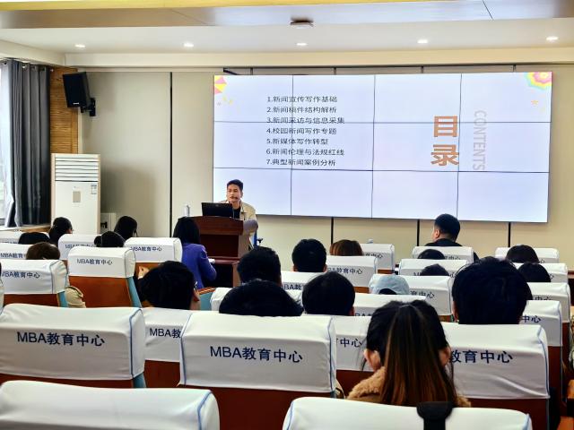 周宪奎围绕新闻写作基础、稿件结构、采访技巧、校园新闻写作、新媒体写作转型、新闻伦理与法规红线、典型新闻案例分析七大核心模块展开系统讲解。他结合校园新闻实例,详细拆解了新闻六要素、倒金字塔结构等实操技巧,针对活动类、会议类、学术类等高频校园新闻场景,明确了不同类型稿件的写作要点与避坑指南,并围绕新媒体传播特点,系统讲解微信推文、短视频新闻的创作规范,强调新闻真实性、客观性的底线要求与著作权、隐私保护等伦理准则。