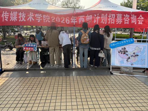 以青春为炬,赴西部之约。传媒技术学院始终积极响应国家号召,大力引导青年学子扎根基层、奉献西部,此前已累计输送83名西部计划志愿者,众多校友在服务期满后选择坚守西部热土,用青春与汗水诠释青年担当,为西部发展注入传媒力量。活动开展前,工作人员与志愿者提前到场,有序完成场地布置、物料准备等各项工作。咨询会现场氛围热烈,前来咨询的学子络绎不绝,工作人员结合宣传资料,细致讲解西部计划招募对象、报名流程、服务领域等核心信息,针对同学们关心的生活保障、升学加分、就业扶持等问题逐一耐心解答,切实消除大家的顾虑,充分调动了学子参与西部计划的主动性与积极性。