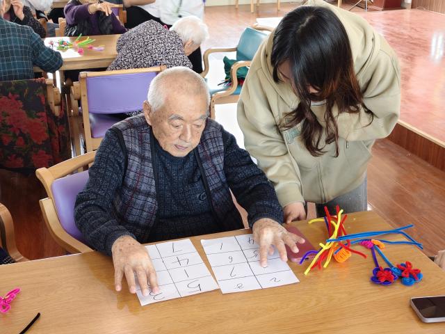 活动现场,志愿者们主动与老人们亲切问候、自我介绍,耐心讲解活动流程与安全注意事项,在互动中拉近了彼此距离。在趣味手工环节,志愿者们将提前准备好各类手工材料逐一分发到老人手中,耐心细致地讲解手工花、趣味小动物等造型的折叠、拼接步骤,针对动手能力较弱的老人,全程手把手耐心帮扶、细心指导,鼓励每一位老人大胆发挥创意。老人们在志愿者的陪伴下专注创作,指尖缠绕出一朵朵栩栩如生的手工花,每一件作品都承载着满满的成就感与幸福感。随后,活动来到趣味数字认知游戏环节,志愿者们陪伴老人们围坐在一起,引导大家积极参与、踊跃应答,在欢声笑语中锻炼思维与反应能力,让老人们在轻松玩乐中感受陪伴的温暖,让温情与美好延续在日常养老生活之中。