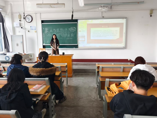 为进一步强化青年学生的社会责任意识与时代担当,引导更多优秀学子将个人成长融入国家发展大局,在服务基层中实现人生价值,4月10日,聊城大学农业与生物学院组织毕业班各班级于东校区2号教学楼举办“青春献西部,奋斗正当时”西部计划动员会活动。