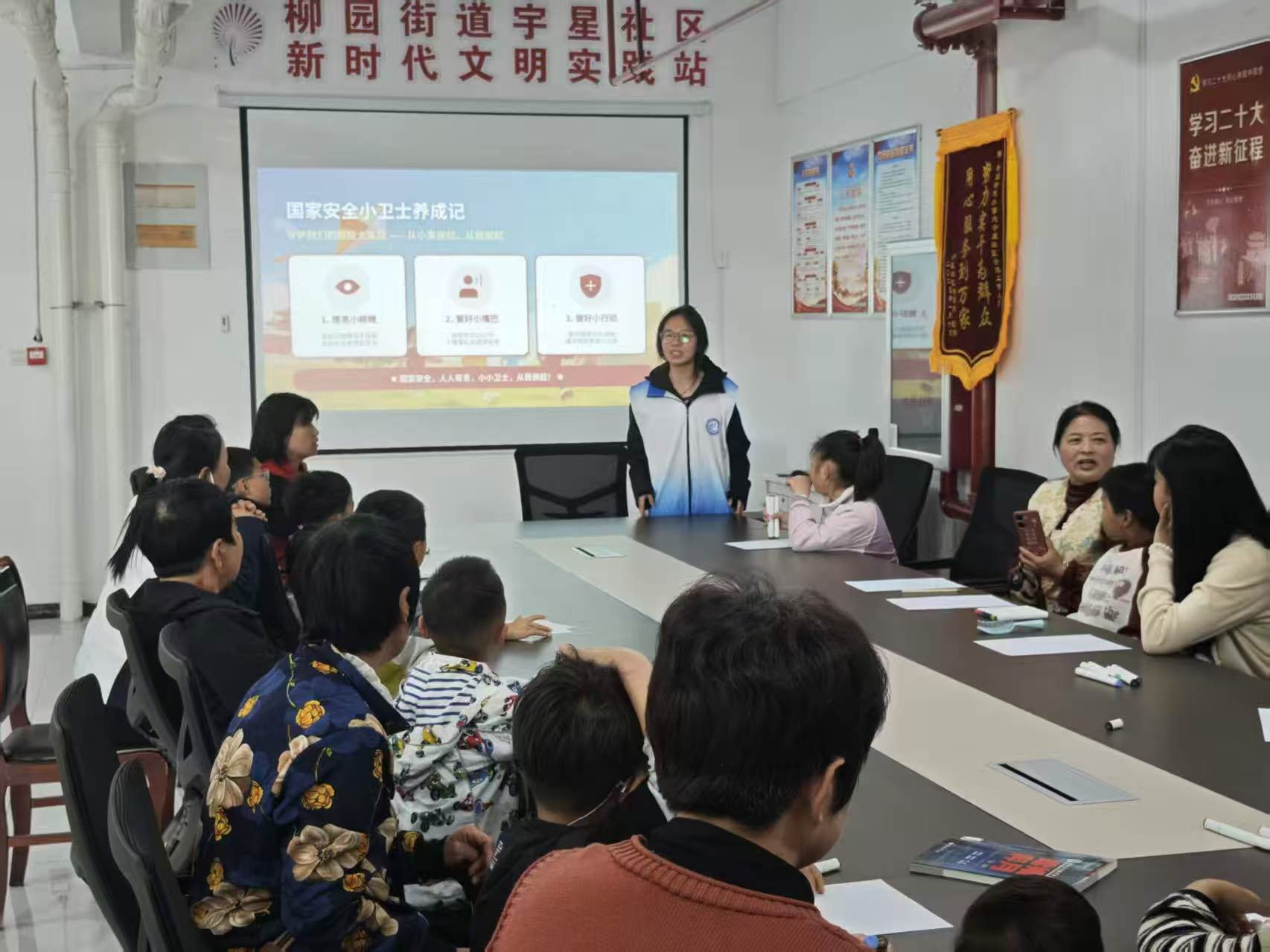 4月11日,商学院(质量学院)社会实践部赴柳园街道宇星社区开展“童心筑防线,携手护国安”主题社会实践活动。活动现场,志愿者以通俗易懂的语言,结合演示文稿与安全教育宣传片,将国家安全相关知识转化为贴近生活的鲜活案例,系统讲解国家安全基本内涵、日常安全常识,以及网络安全、文化安全维护等重要内容。通过互动问答、情景模拟等形式,志愿者充分调动孩子们的参与积极性,推动国家安全观念入脑入心,并借助手抄报创作环节,引导小朋友以画笔为媒,将所学安全知识融入作品创作,充分展现少年儿童对国家安全初步认知的同时,充分体现了我院志愿活动的鲜明成效及幼年儿童安全意识与法治观念的持续提升。