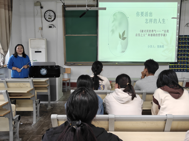 分享环节,渠海霞老师以“拥抱勇气,重塑自我”为主线,结合校园生活实例与个人感悟,生动解读阿德勒心理学中“课题分离”“自我接纳”等核心概念。围绕阿德勒心理学核心要义、被讨厌的勇气的现实意义、人际关系中的自我和解三大主题,她深入剖析讨好型人格、过度在意他人评价等青年常见心理困境,阐释“自由就是被别人讨厌”的深层内涵,引导同学们拒绝精神内耗,专注自我成长,以从容心态面对人际与生活挑战。