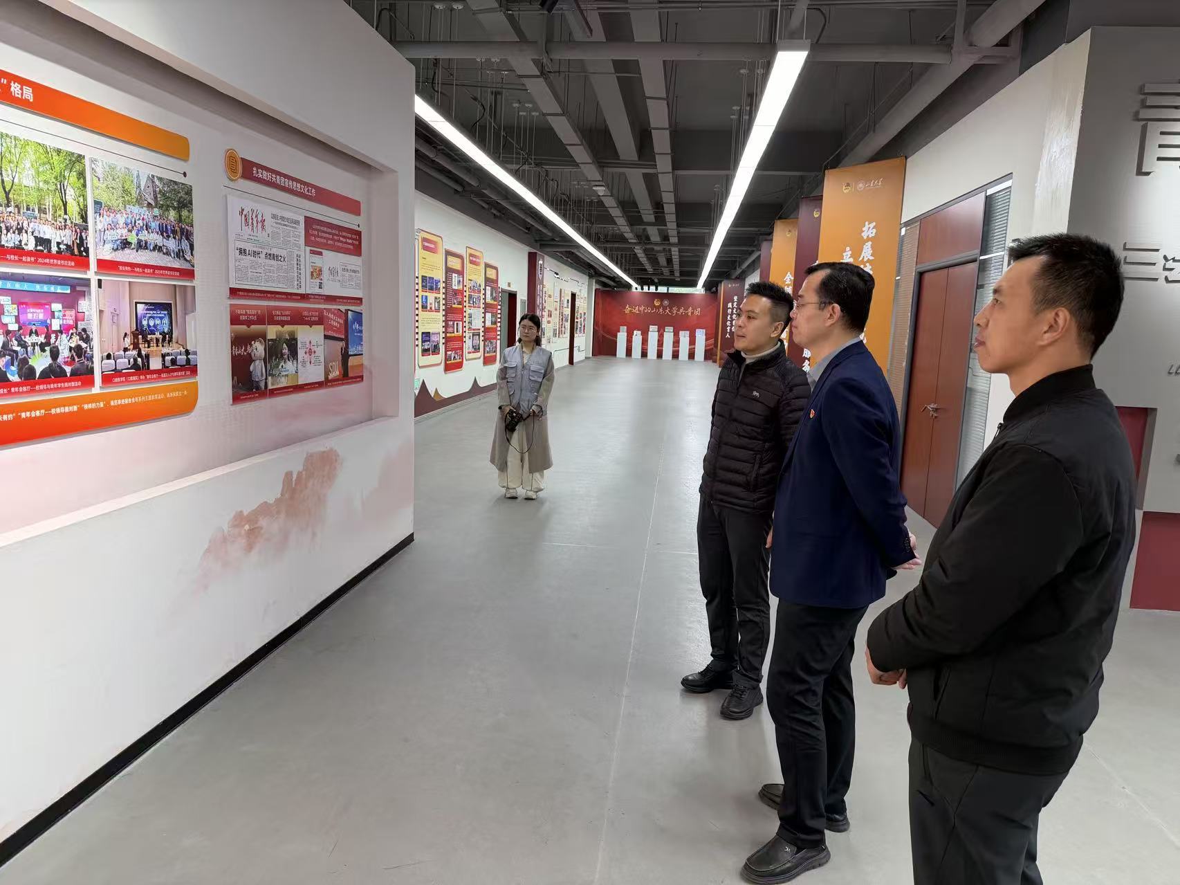 在山东大学,全体成员共同参观了“奋进中的山东大学共青团”展览与学生组织活动场地,直观感受其深化改革建设成果。座谈会上,双方围绕共青团思想政治引领、社会实践、文体活动、权益服务等工作进行深入探讨,山东大学共青团的典型经验与创新做法,为我校相关工作开展提供了宝贵借鉴。